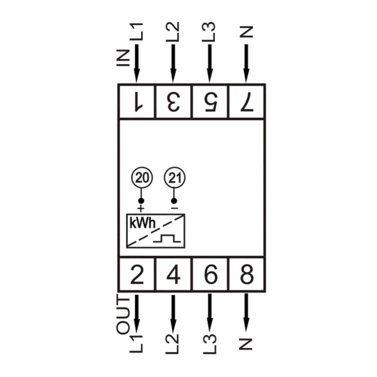 Compteur électrique utilisé pour la sous facturation d'électricité d'un réseau triphasé + neutre jusqu'à 80A. Son affichage LCD permet une lecture directe des kWh. Conforme CE + MID.