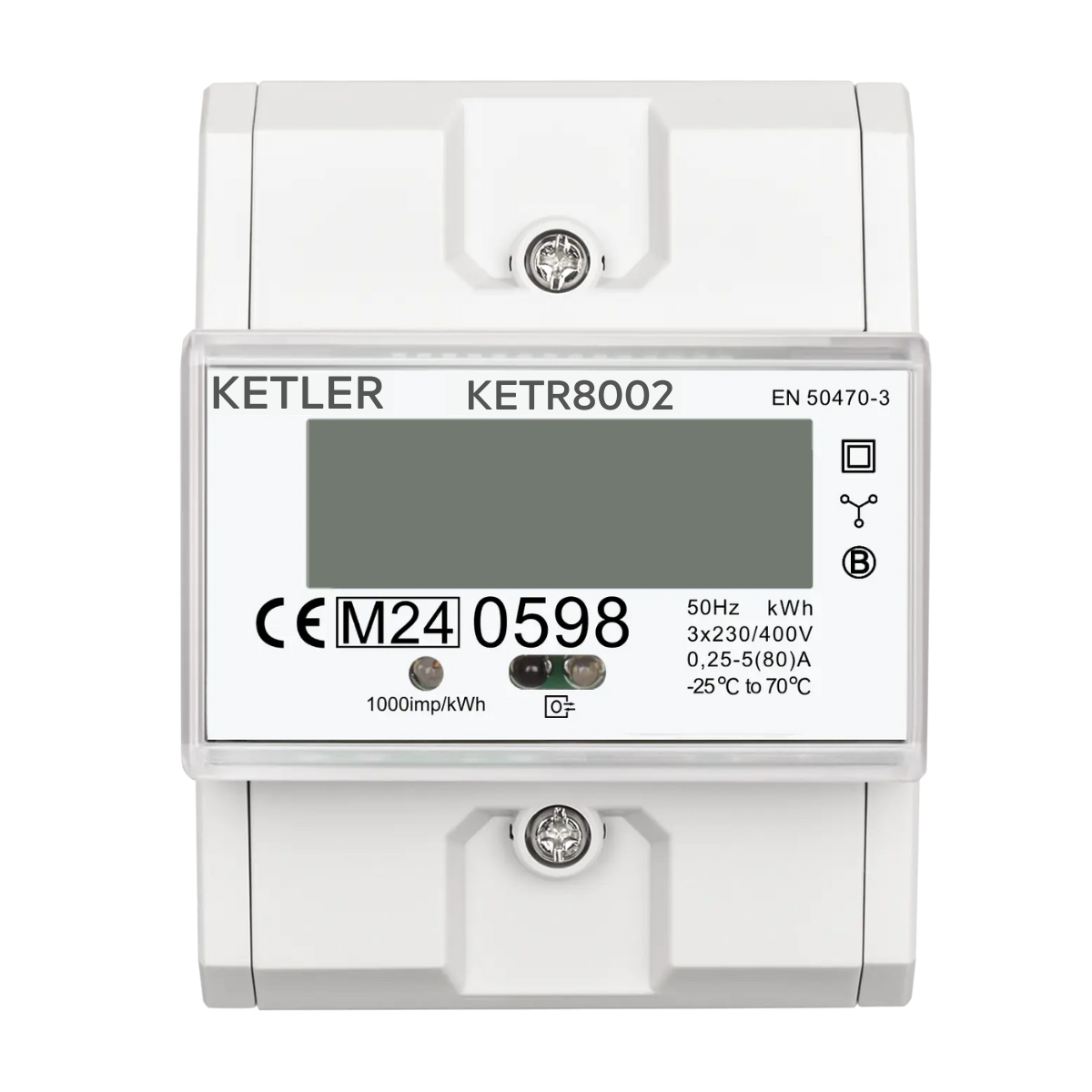 KETLER - KETR8002 : Compteur électrique modulaire KETLER - Tétra 80 A - Certifié MID - Sortie d'impulsion - Simple tarif